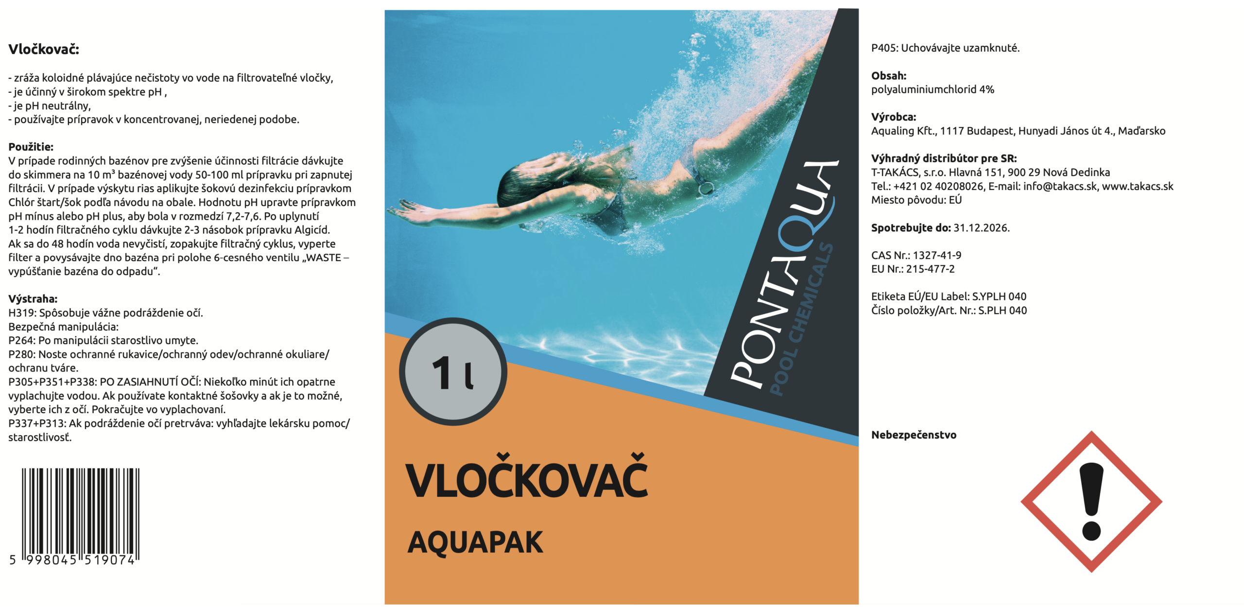 Pontaqua Vločkovač 1 l je vysoko účinný prípravok na zlepšenie kvality bazénovej vody. Tento vločkovač slúži na zrážanie jemných častíc a nečistôt suspendovaných vo vode, čo pomáha udržiavať bazénovú vodu čistú a priezračnú. Je ideálny pre bazény, kde je potrebné odstrániť drobné nečistoty, ktoré sa nedajú zachytiť bežným filtračným systémom.